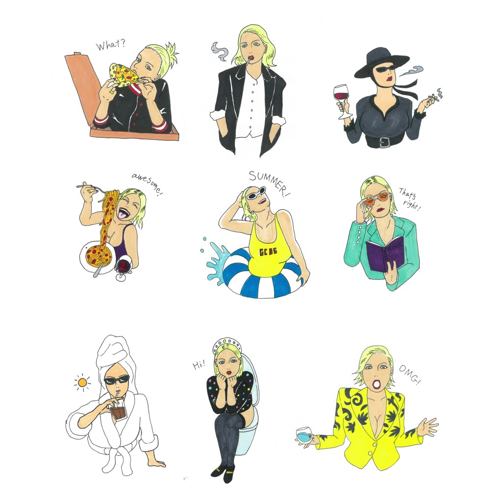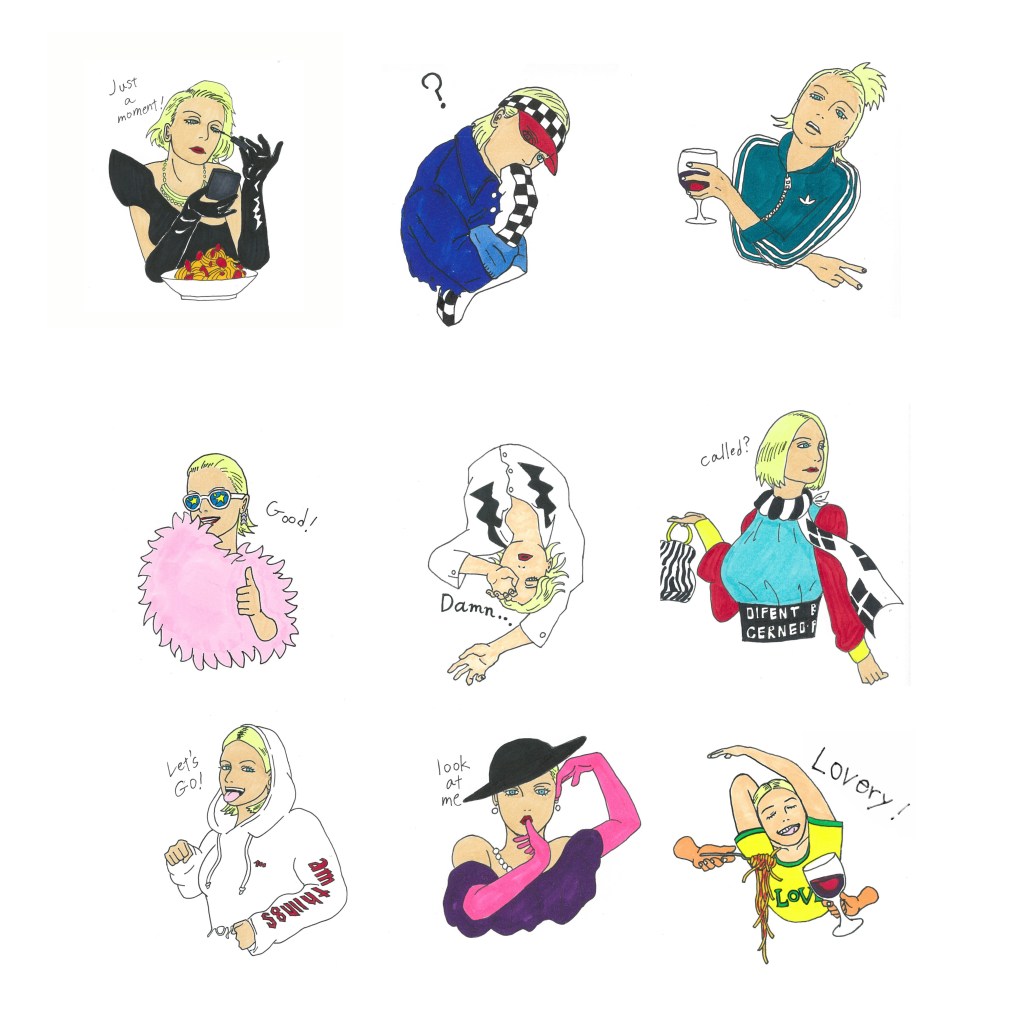 Instagram経由でCarolineご本人より、私のメッセージスタンプを作って欲しいというメッセージをいただき、プロジェクト始動。今回モデルとする参考資料はご本人のInstagramポスト写真からファッションや表情、バラエティ豊かなスタンプ構成の観点で選定の上、モチーフとして採用させていただきました。