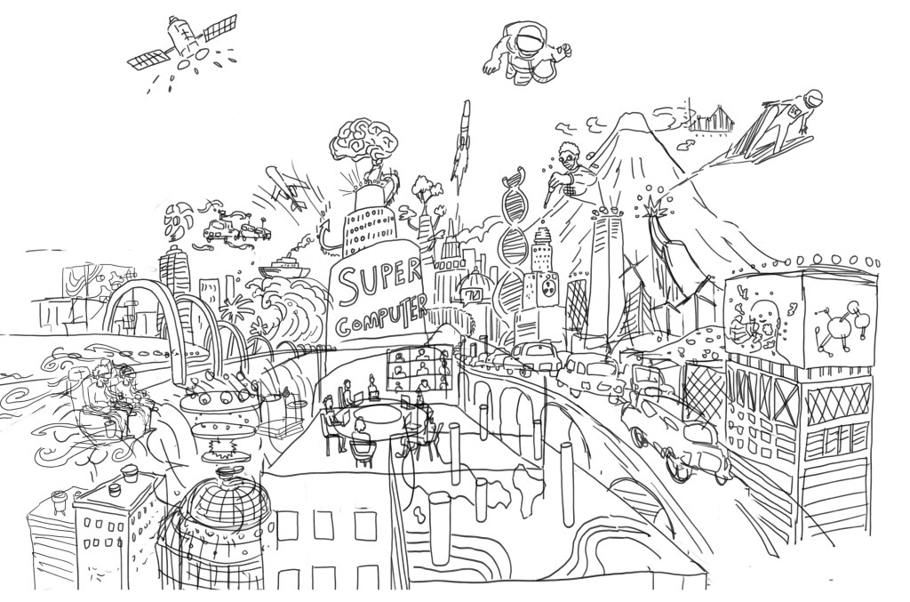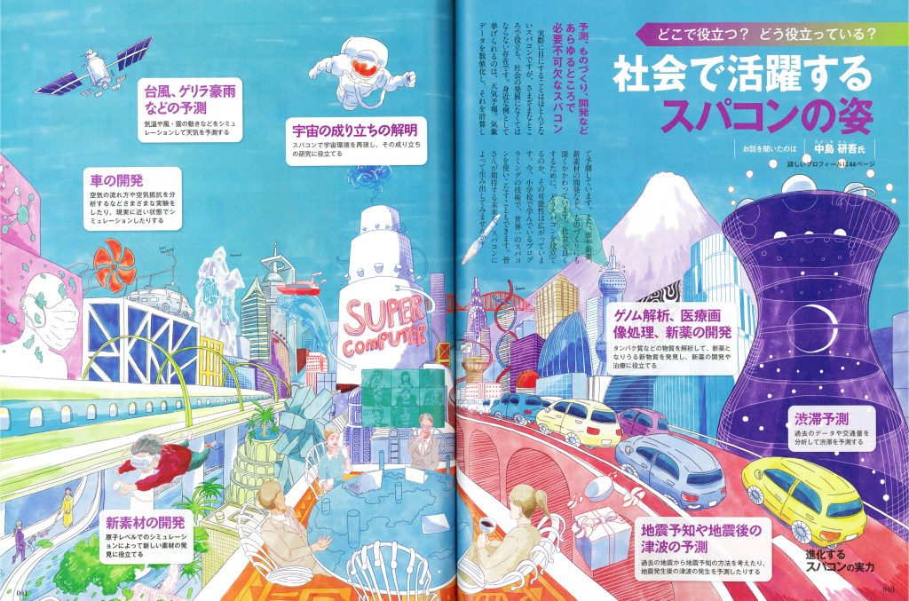 今作ではスパコンが社会にどのように貢献しているのかを、街から飛び出すようなワクワク感溢れる表現で制作しました。
