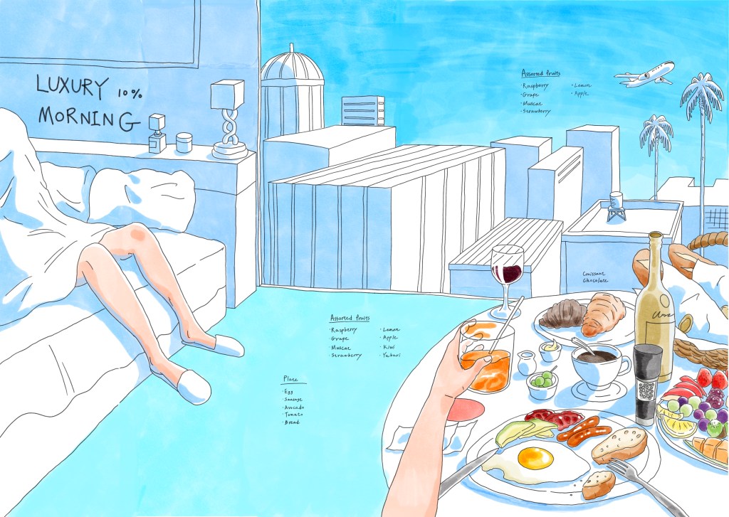 東京都で活動するイラストレーター。タッチはデジタル水彩、モチーフは人物や動物、食べ物やインテリアから風景まで様々。使用機材は主にiPad。黒のボールペン風デジタルブラシで輪郭を縁取り水彩風のデジタルブラシで着色する技法です。時に紙の上にボールペンで輪郭を縁取りコピックで着色する表現も行います。作品はラグジュアリー系ブランドの広告プロモーションアートから海外モデルのスタンプ、ミュージシャンのジャケットカバー、新婚夫婦を祝福するルームツアーのアートワーク、ウェディングアート、飲食店のメニューイラストまで様々な分野、領域をカバーします。 An illustrator active in Tokyo. The touch is digital watercolor, and the motifs range from people and animals to food, interiors, and landscapes. The equipment used is mainly an iPad. This technique uses a black ballpoint pen style digital brush to outline the outline and then colors it with a watercolor style digital brush. Sometimes I outline the outline with a ballpoint pen on paper and color it with Copic markers. Works cover a variety of fields and fields, from advertising promotion art for luxury brands, stamps for overseas models, jacket covers for musicians, artwork for room tours celebrating newlyweds, wedding art, and menu illustrations for restaurants.